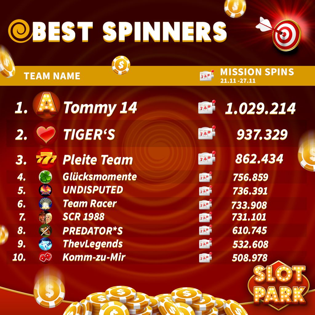 Competition Dates: 21.11-27.11 The Top 10 Teams with the highest number of Team Missions Spins are rewarded with a well-deserved bonus! Congratulations to all participating teams! It's easy to take part! 1. Spin as much as possible in Team Missions 2. Check the rankings every Friday 3. Be the …