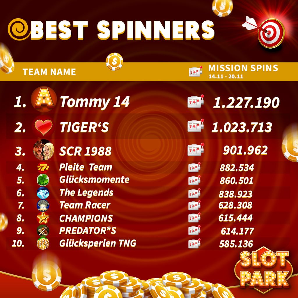 Competition Dates: 14.11-20.11 The Top 10 Teams with the highest number of Team Missions Spins are rewarded with a well-deserved bonus! Congratulations to all participating teams! It's easy to take part! 1. Spin as much as possible in Team Missions 2. Check the rankings every Friday 3. Be the …