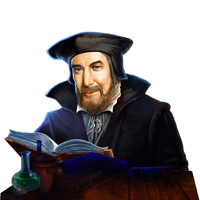 The highest win possible in this game is earned once five scholar symbols find their place along a win line. Three times as much as portraits of Mephisto would get you – plenty of reason to seek his advice then!