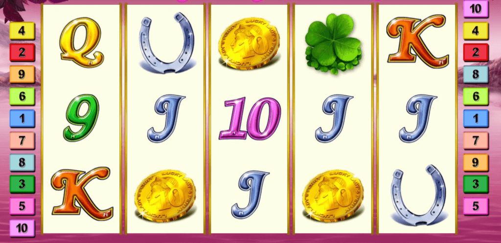 The gorgeous Lady of the Lucky Lady’s Charm™ deluxe game is the joker and will substitute for any other symbol on the reels.