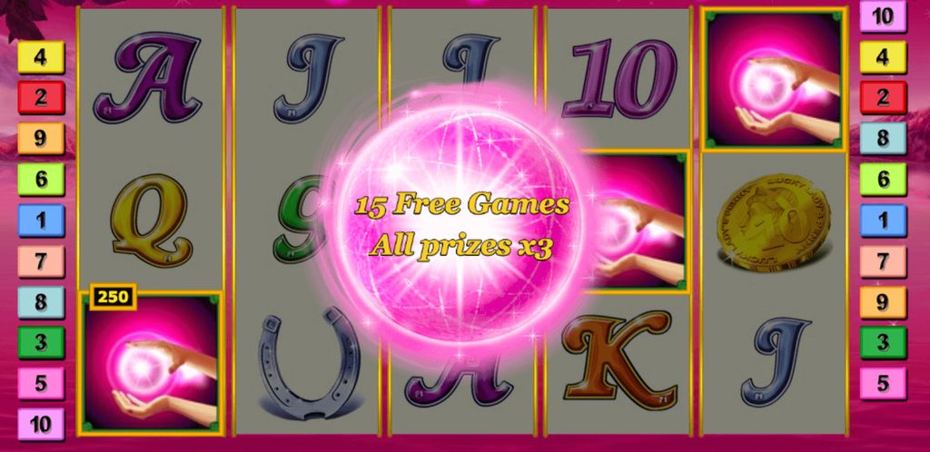 Lucky Lady’s Charm™ deluxe scatter symbol is the glowing Cristal orb. Get three of them to win 15 free spins with a triple winning bonus. The winning of the free spins is based on your last bet.