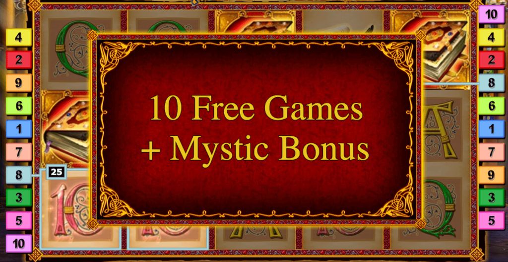 The scholar’s tome is the scatter symbol Mystic Secrets™. Three tomes will give you not only a high single round payout, they will also activate 10 free spins immediately!
